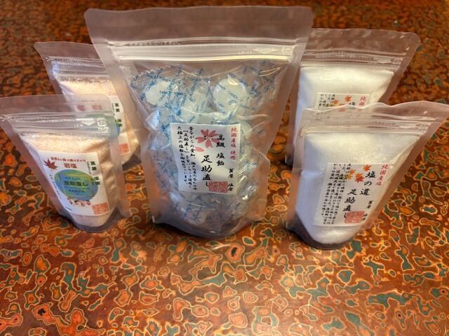塩の道 足助直し 150g 2個、令和の足助直し(岩塩)100g2個、高級塩飴26粒 1個